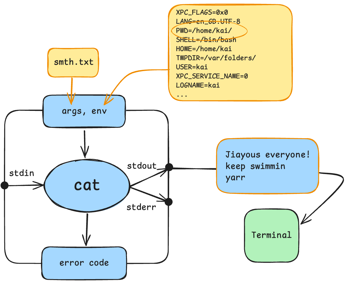 kai@kai:~$ cat smth.txtAite, ya’ll should b familiar w this! Lets see how it looks like using prof’s diagram of a process:
